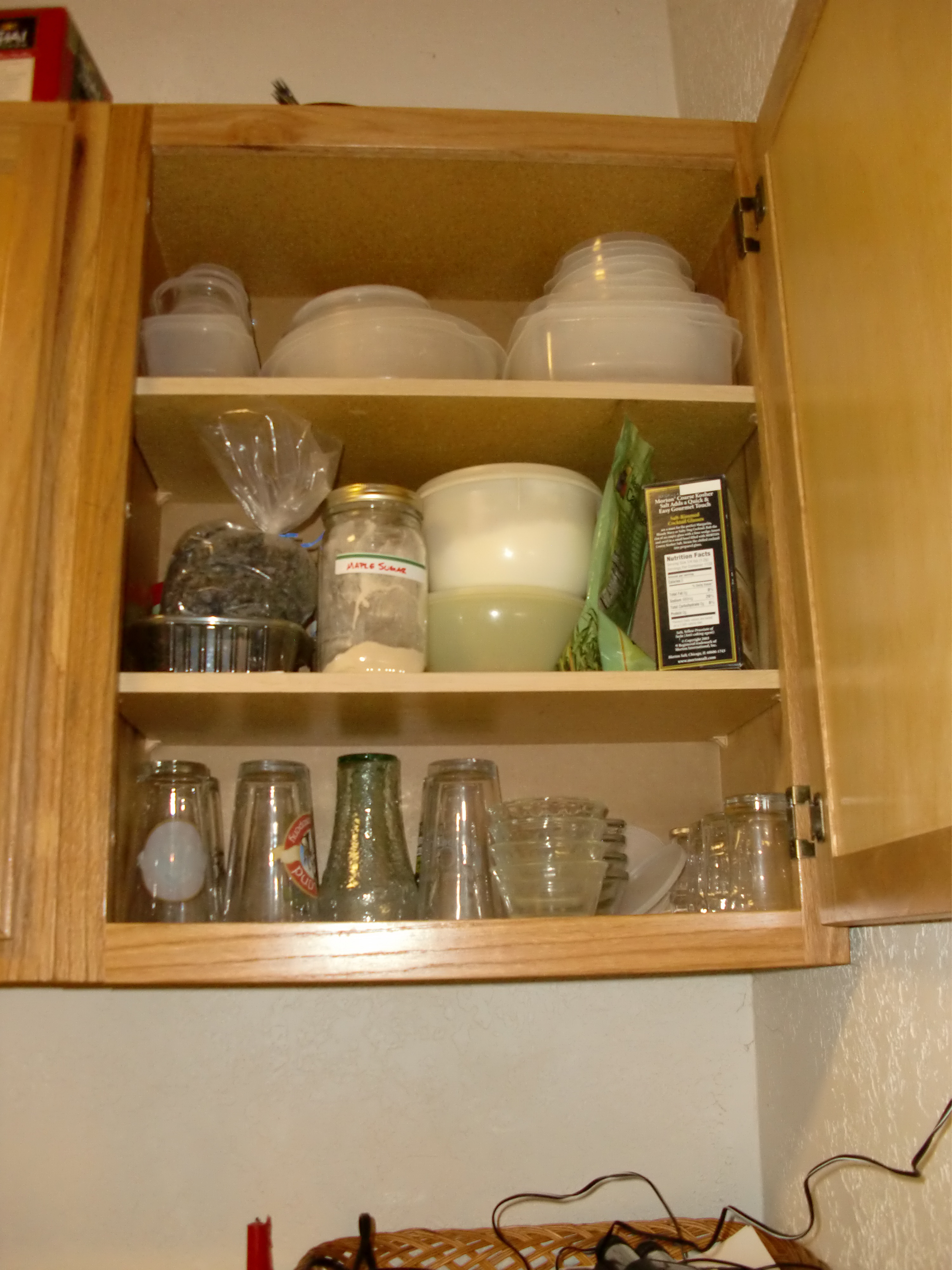 We’re still at an impasse with the utility room, which is also the entryway we use most often and where one of the cats’ litter boxes is. I’m getting rid of some stuff, but with the way the room is set up, I’m not sure how much more organizing I can do with it. And pretty soon, there will be winter coats, boots, hats, and mittens strewn all about. Maybe I should post before pictures of that and ask for suggestions. And I’m afraid to tackle the office/pantry (yes, our office is also currently a pantry). Maybe I’ll work on my closet next. I know just what I want to get rid of there.