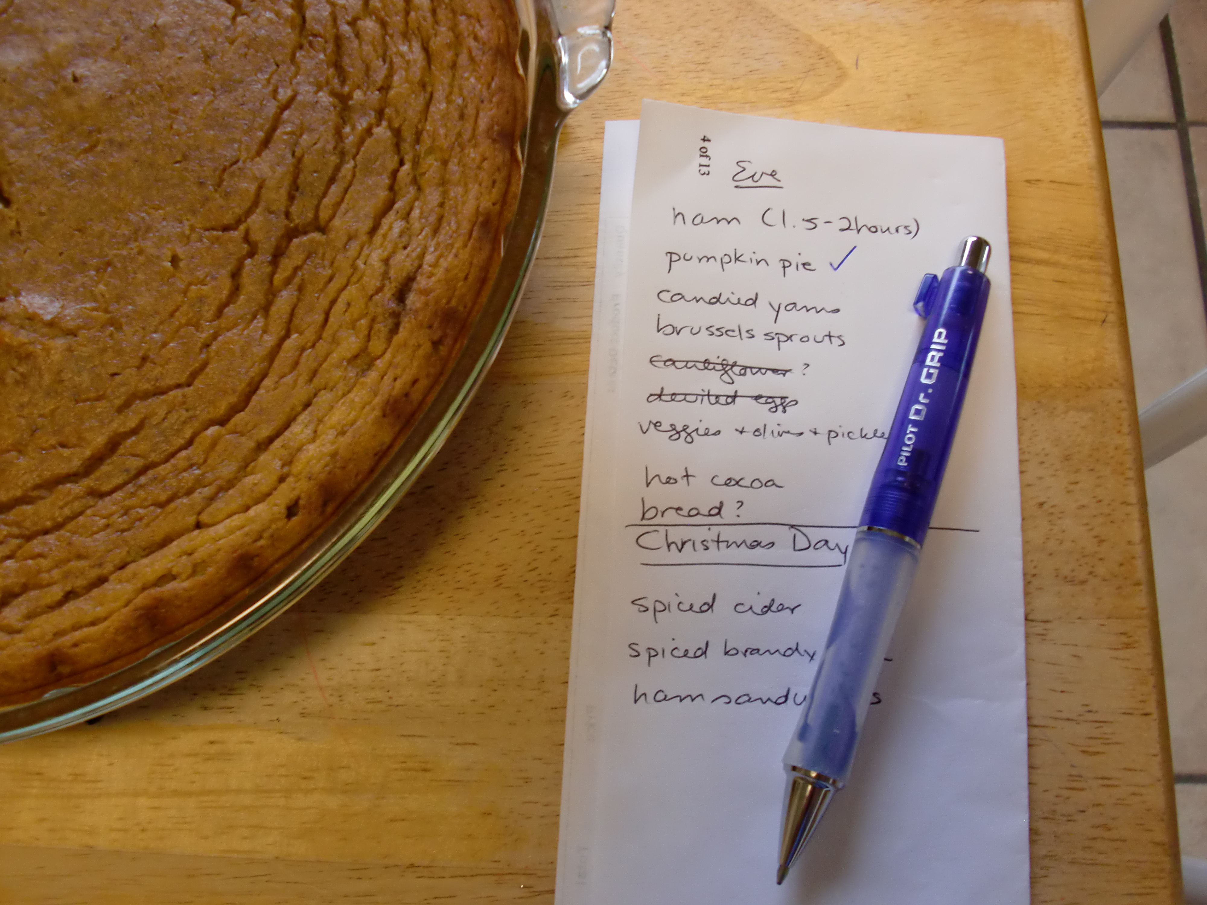 I no longer have the sense that good things are ahead of me, but on the other hand, I have a sense of urgency: if I’m going to do Great Things, now’s the time for it. Of course, I got up this morning with the lofty goal of taking a jog at the park before making Christmas Eve dinner, and it quickly became apparent that I needed to lower my expectations because one of those things just wasn’t gonna happen.