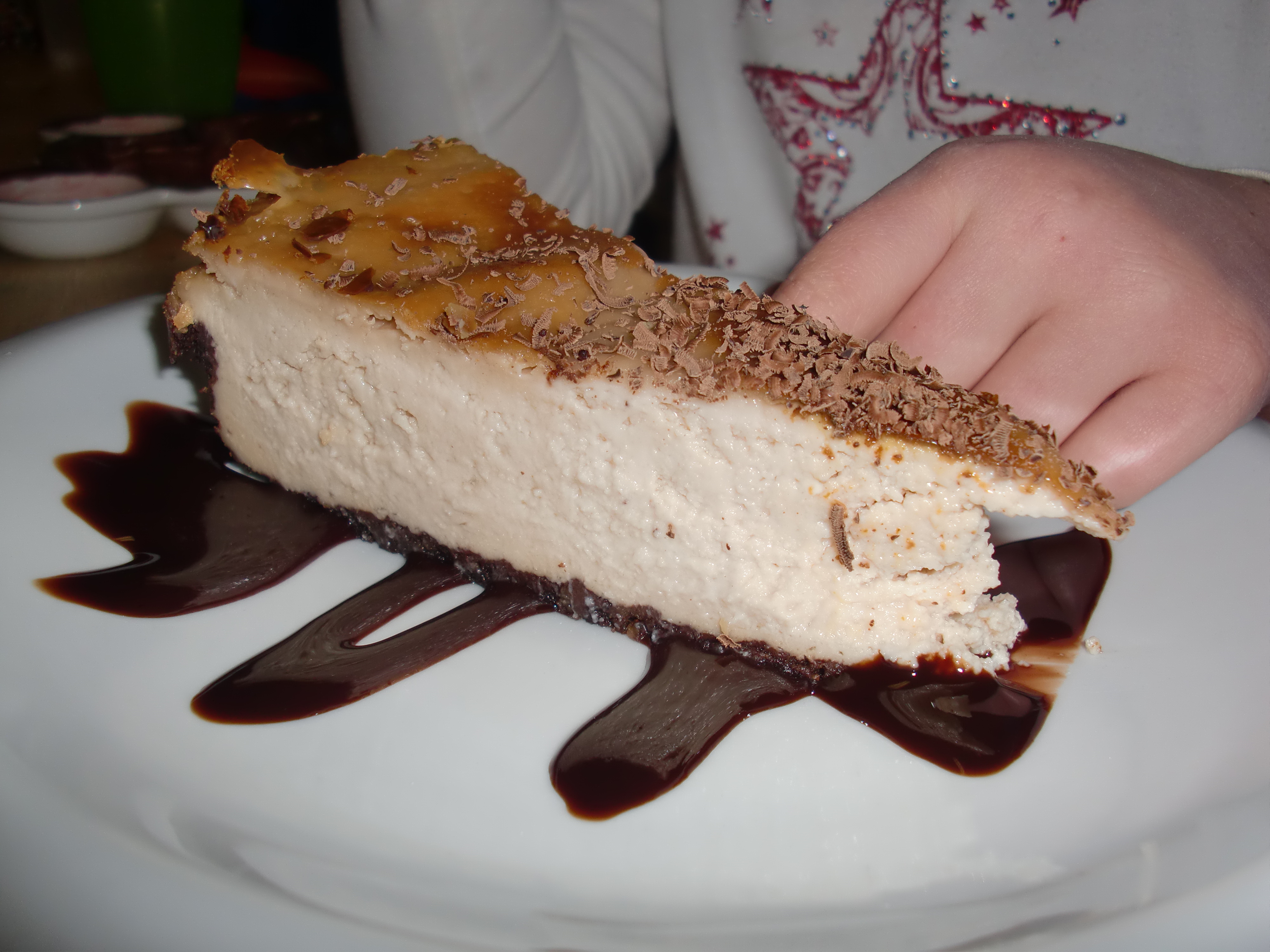 My husband's piece, with Bailey's. I think any negatives resulting from overcooking were overcome by the Bailey's garnish.
