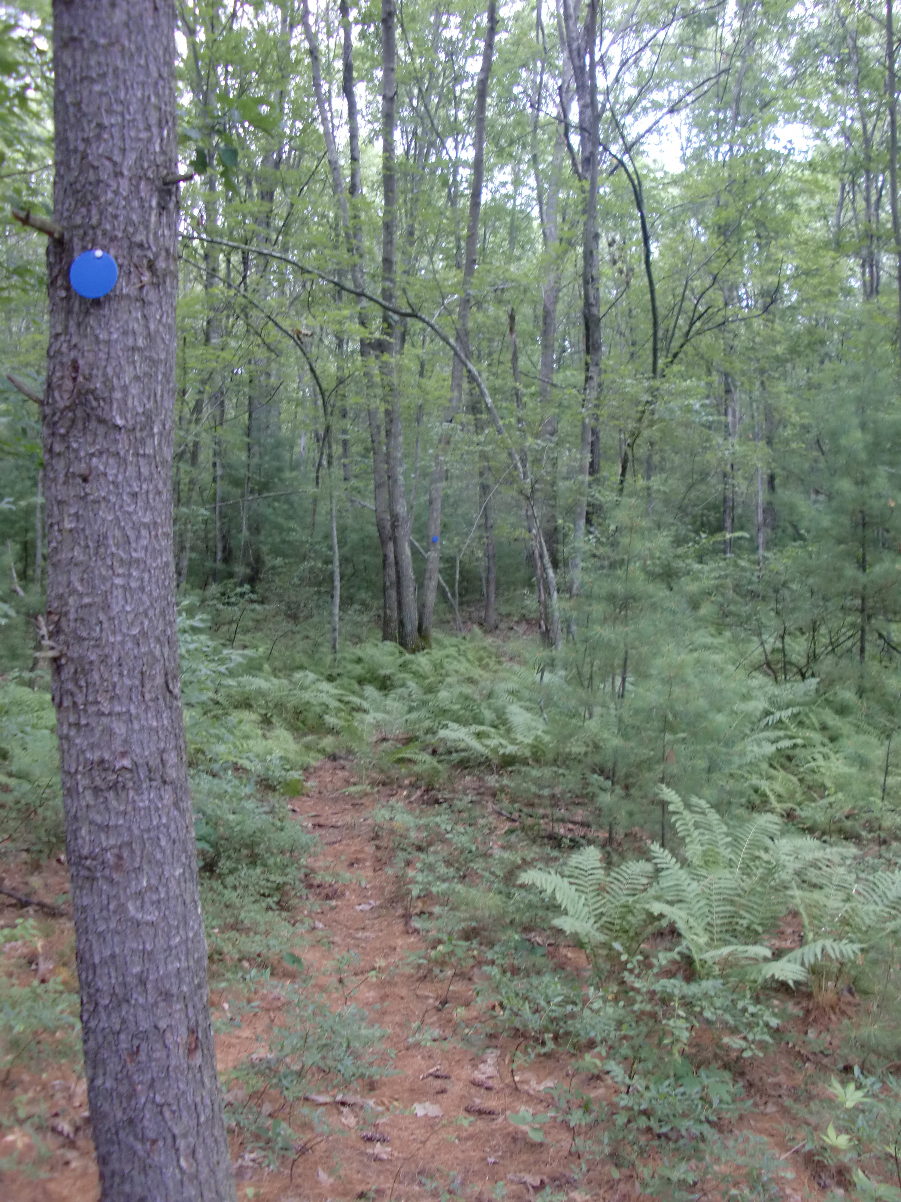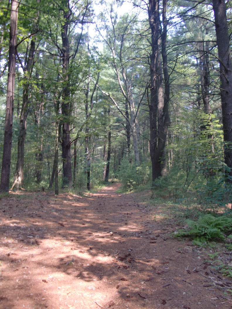 The third hike was on a Sunday. This one was the kids, my husband, and me. We went out to the pond on the Pitch Pine Trail and came back via the Sassafras Trail, the longer loop to the north of the cart path.