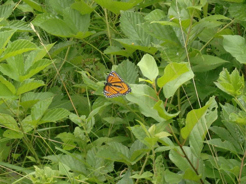 We saw evidence of predation (bird feathers on the trail, always a thrill for my daughter). We heard a bullfrog and saw a heron and took photos of a Viceroy butterfly. We saw ants moving eggs or maybe larvae across the trail (we guessed that perhaps they were moving their nest). Our homeschooling friends saw turkey chicks crossing the road. We saw a slug.