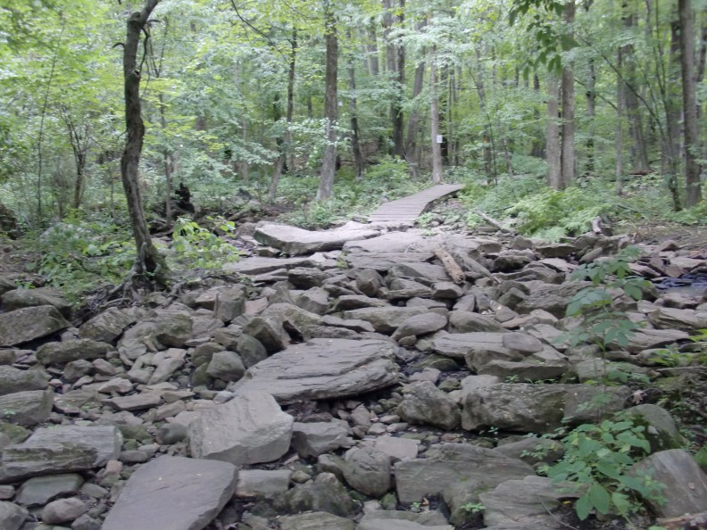 I saw one dad pushing a toddler in a jogging stroller on the trail. He was having some trouble, but he had one of those with the smaller wheels and the swivel wheel in the front. I think that with a stroller with 16″ wheels and a fixed front wheel, it would be easier going. It might be challenging to cross some of the streams where you have to go rock to rock, but I think it would be possible with a jogger stroller (I’ll note here that I’ve never hiked with a jogging stroller. I wear my kids on my back until they’re almost four, then I let them walk). Most of the rest of the trails are wide, pretty smooth, and basically flat.