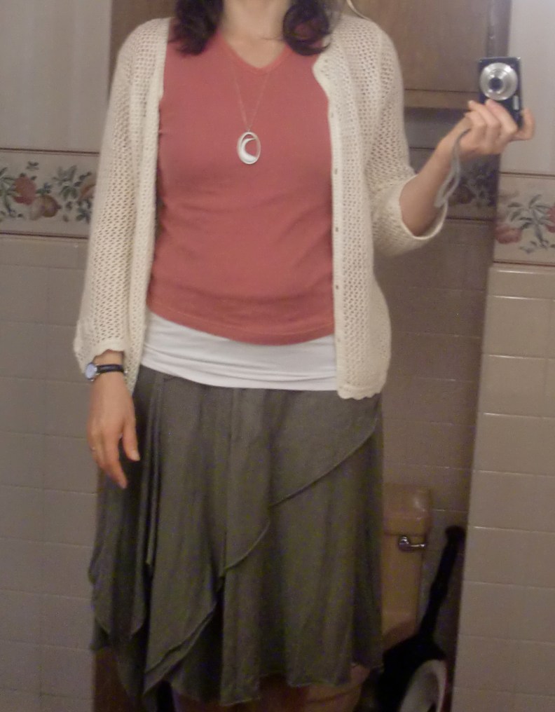 Today I wore an outfit from items I already own but had never put together before. I even wore earrings and a necklace. My children couldn’t stop staring at me.