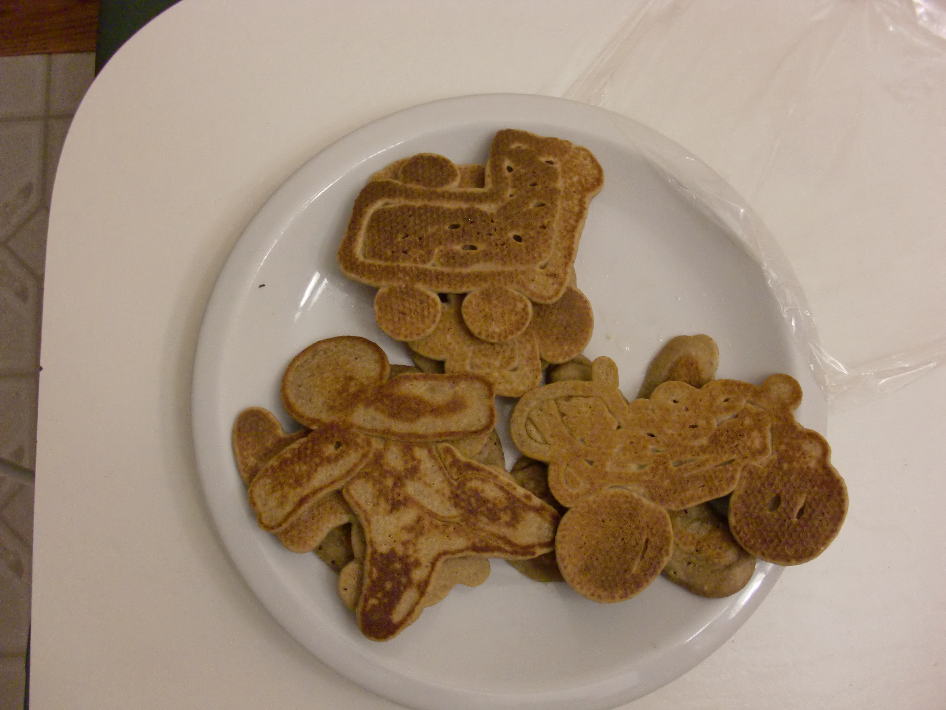 But I rallied during dinner prep. I changed plans mid-course and made a homemade curry paste to season (along with some cashew butter) the swiss chard I was cooking, then I put batter into a squeeze bottle and wowed the kids, my husband, and myself with whimsically shaped pancakes.