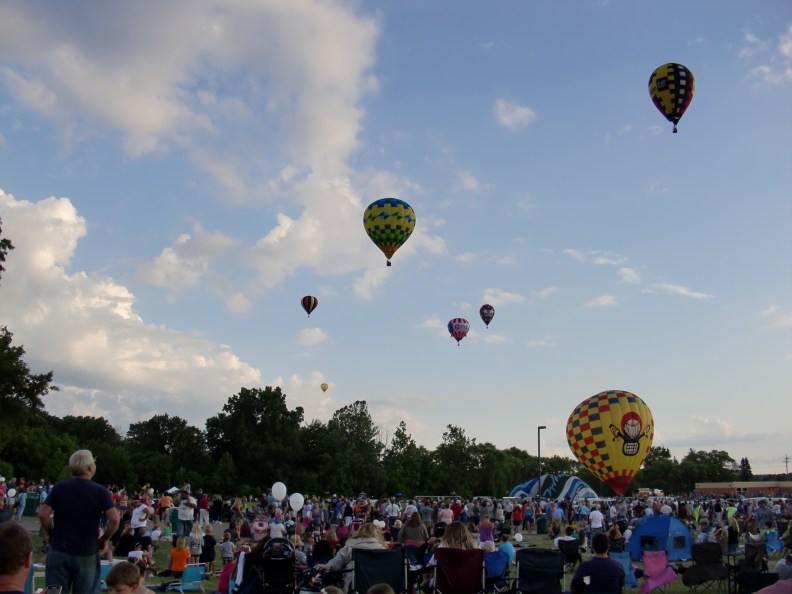 The wind grounded many of the balloons; of the ~40 scheduled to take off that evening, we got to see 10 go up. But we didn’t mind. For my family, ten hot air balloons was all of the excitement we needed.