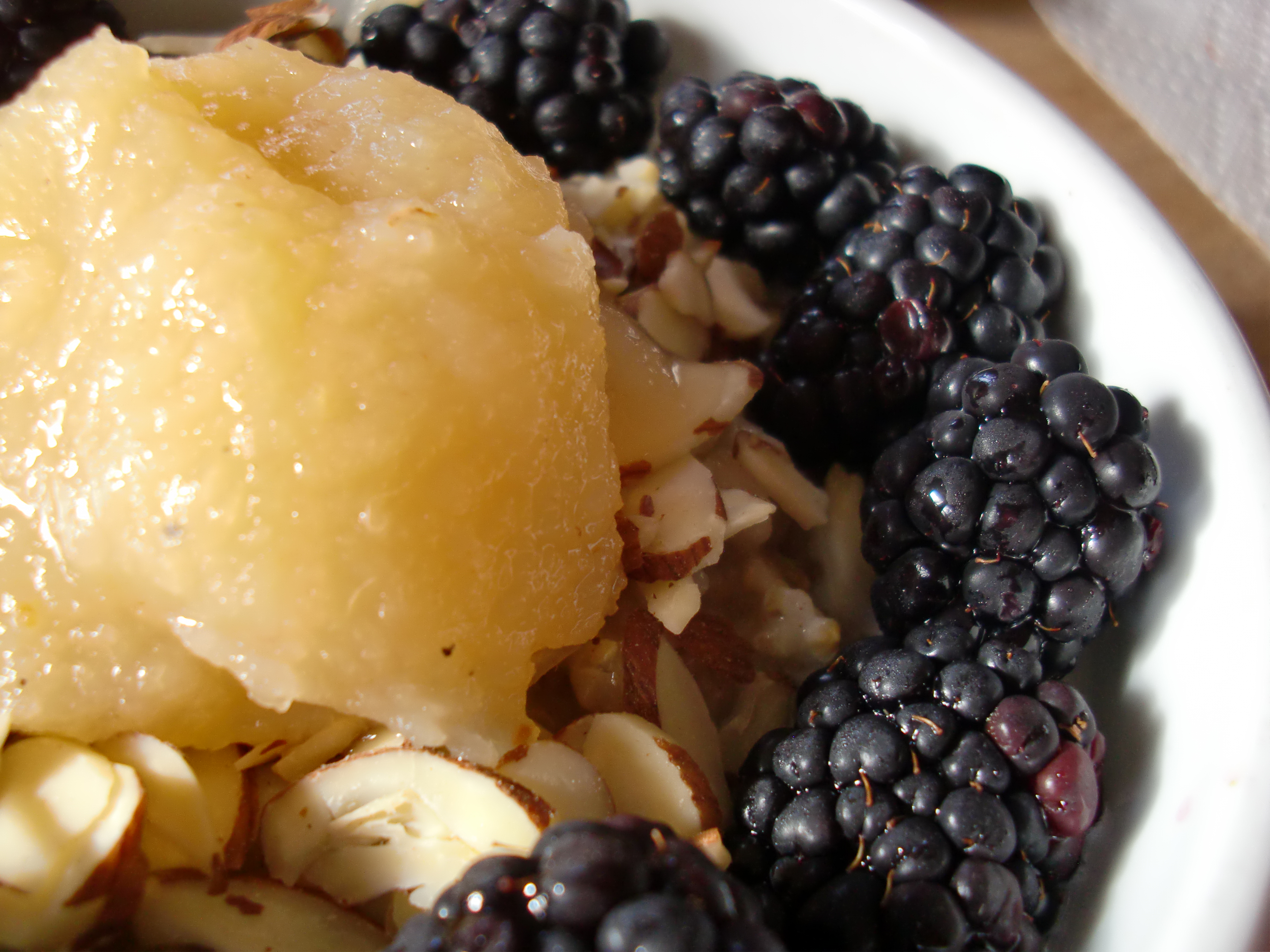 Yes, there’s oatmeal in there. It’s nestled under the applesauce, almonds, and blackberries.