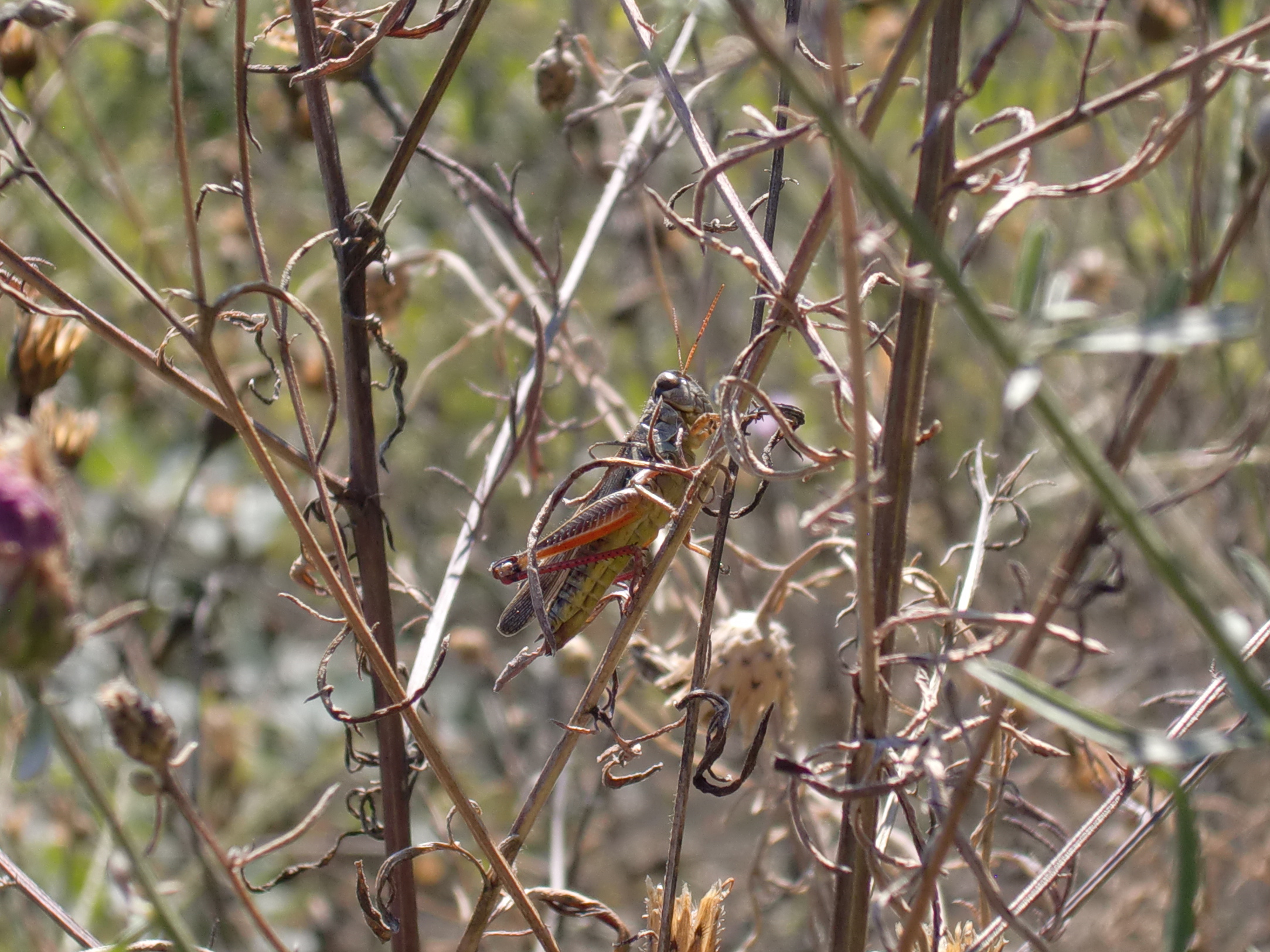 Thank you! Yes, I was actually taking a photo of the flowers (of which you can only see the stalks in this shot), but then I noticed the grasshopper and decided to make him (or her?) the star of the show.