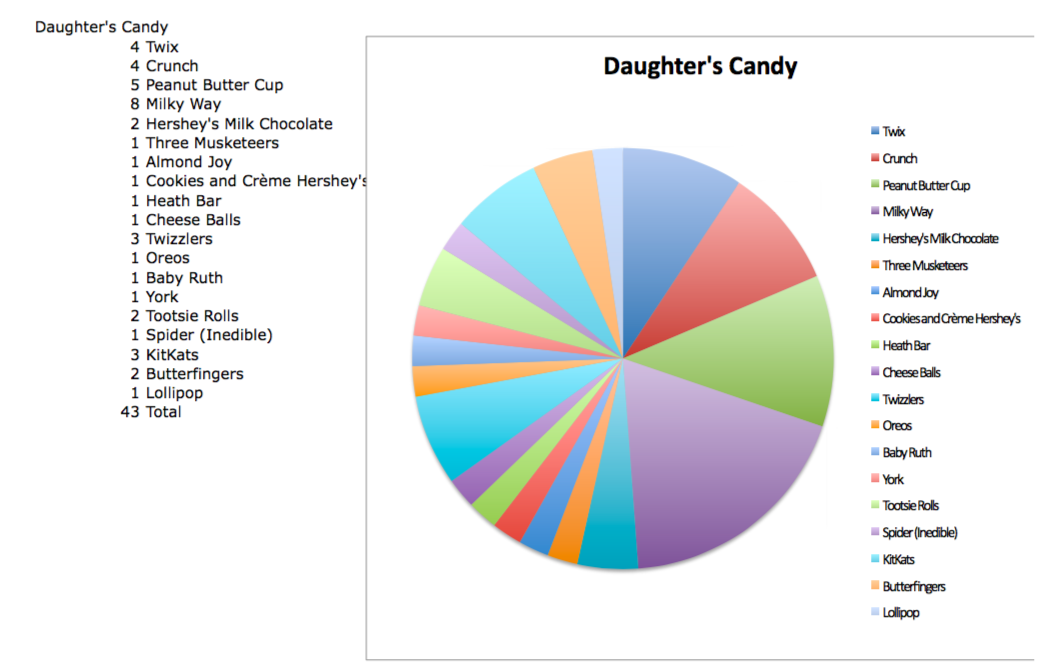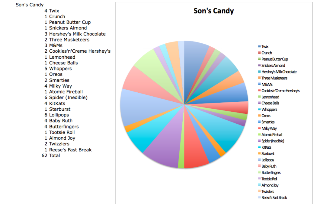 Categorizing and graphing my kids’ candy haul has become an annual tradition. And my kids, as nerdy as their parents apparently, cheer more for making pie charts than they do for the candy itself.