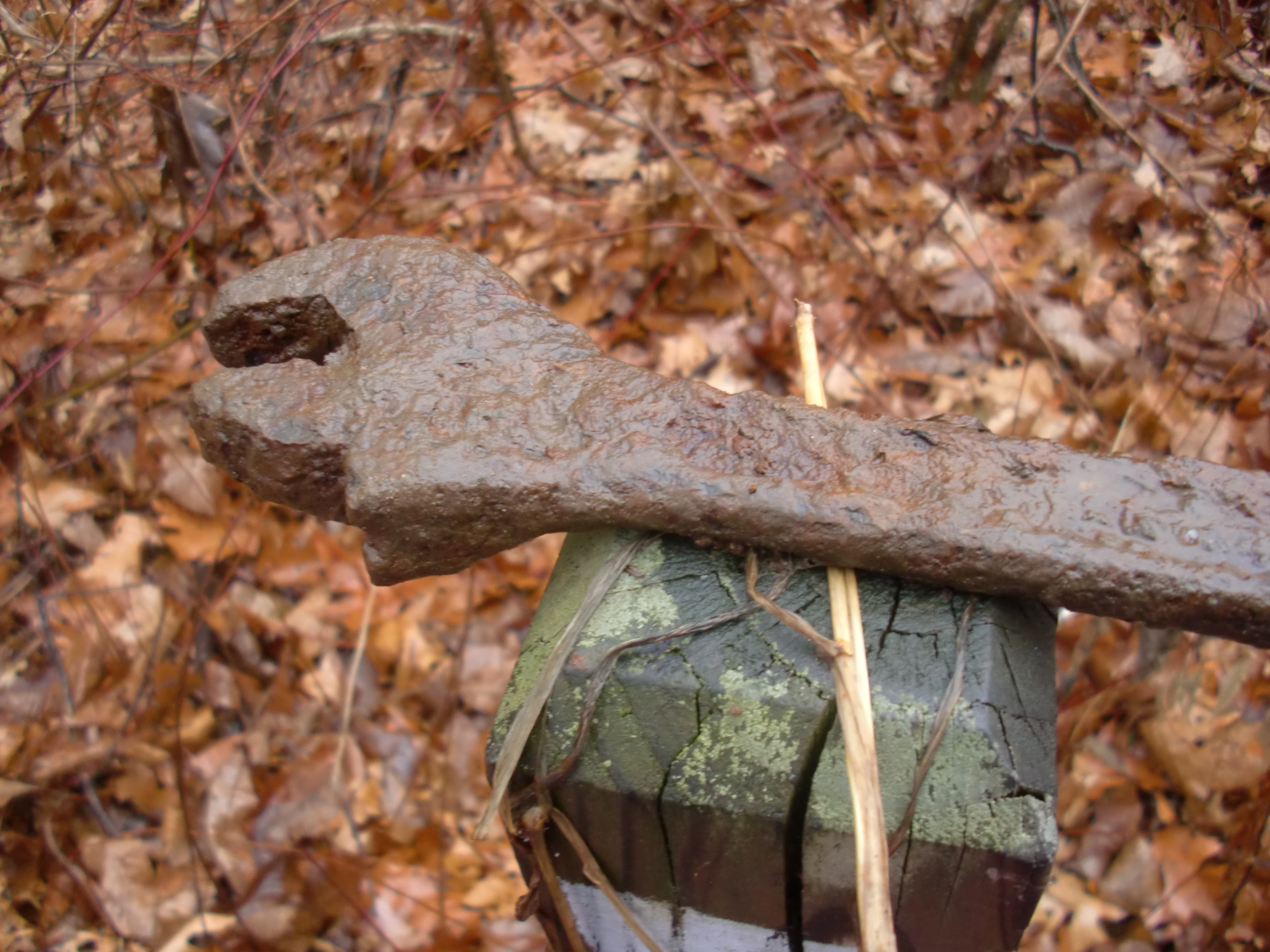 Based on the mud covering it, we suspect it’s a sort of root, pulled up by a raccoon or dug up by one of those dogs.