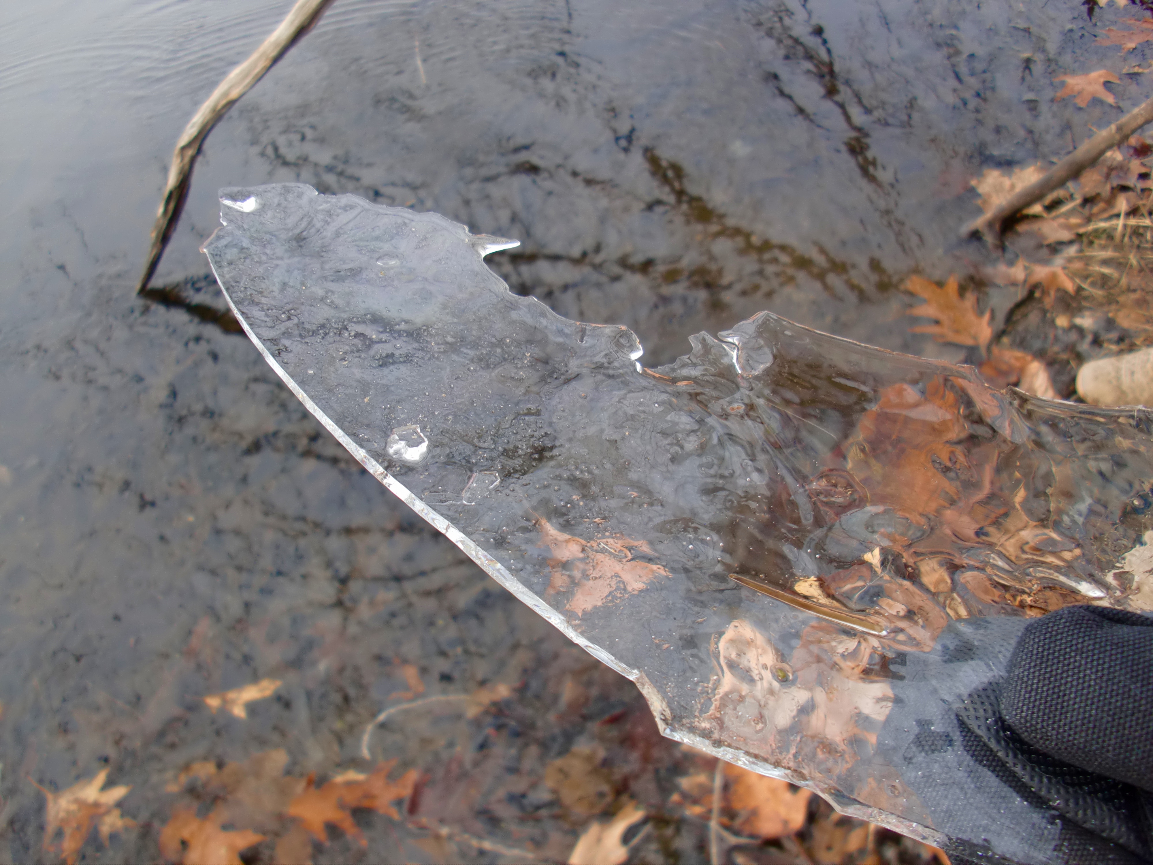 Besides my spouse’s presence, another difference this week was ice (again). We had thin, normal ice on the river.