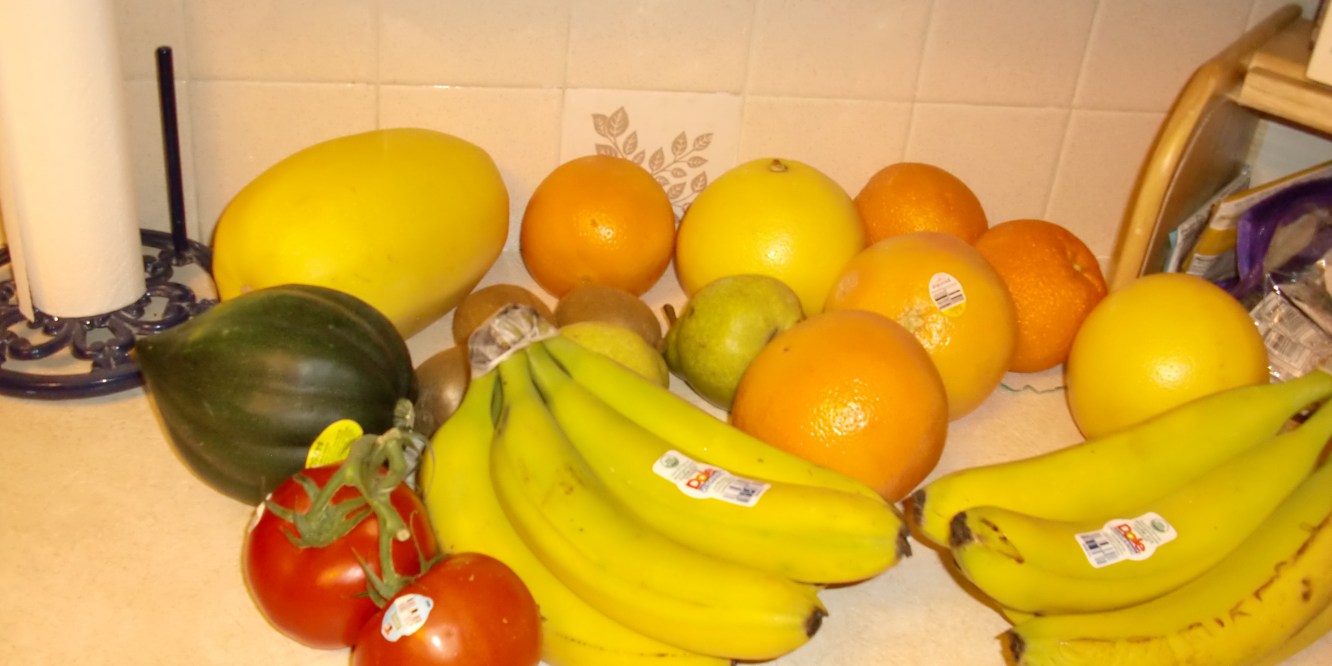 “Big bananas?” I asked, clearing onion skins into the compost bucket.