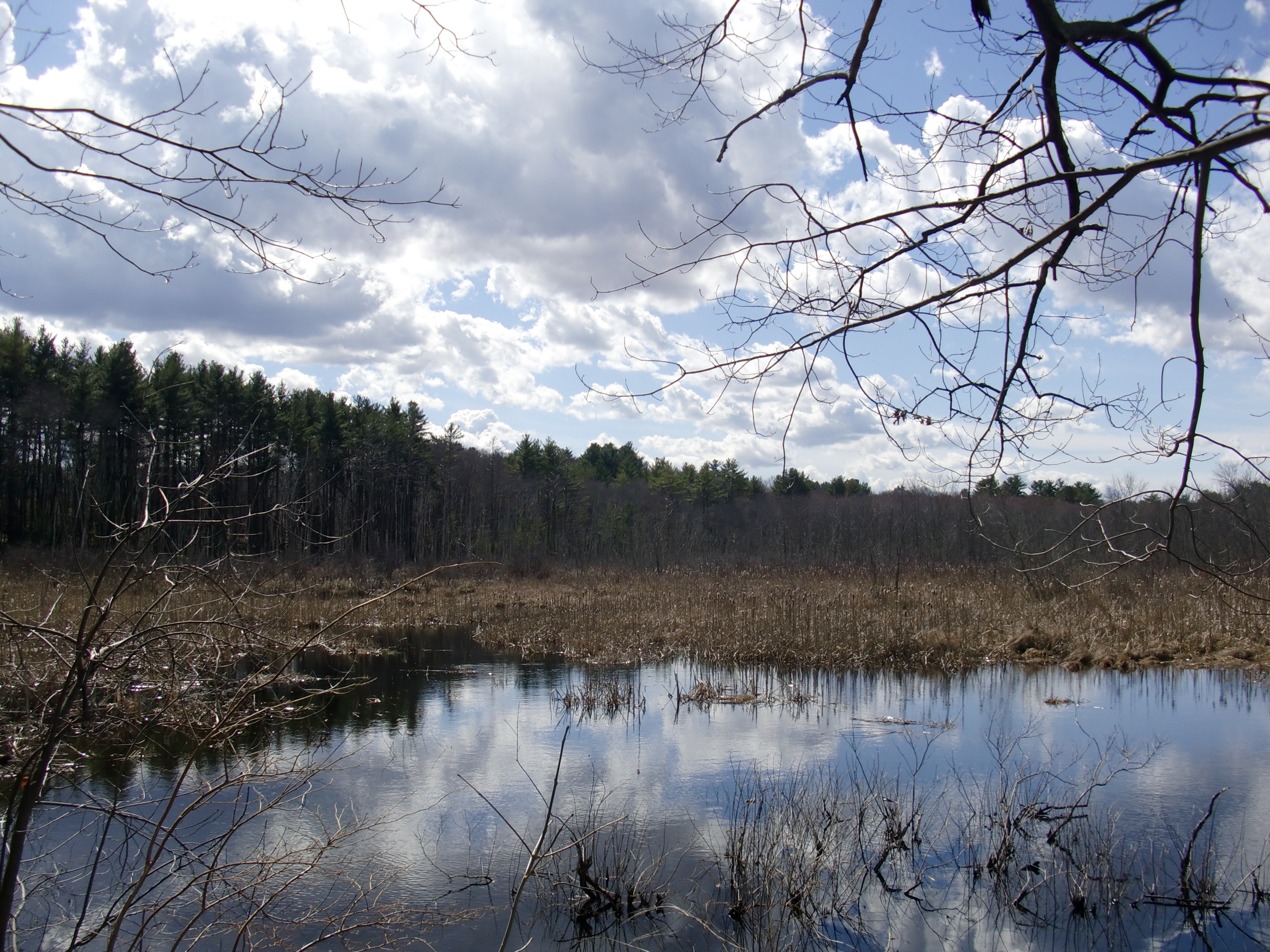 We heard (but did not see) Spring Peepers (Pseudacris crucifer), which I (and everyone else I talked to) first heard making noise the day after our last hike, and what we think had to have been either Green Frogs (Lithobates clamitans) or someone plucking a banjo, although it seems a little early in the season for either.