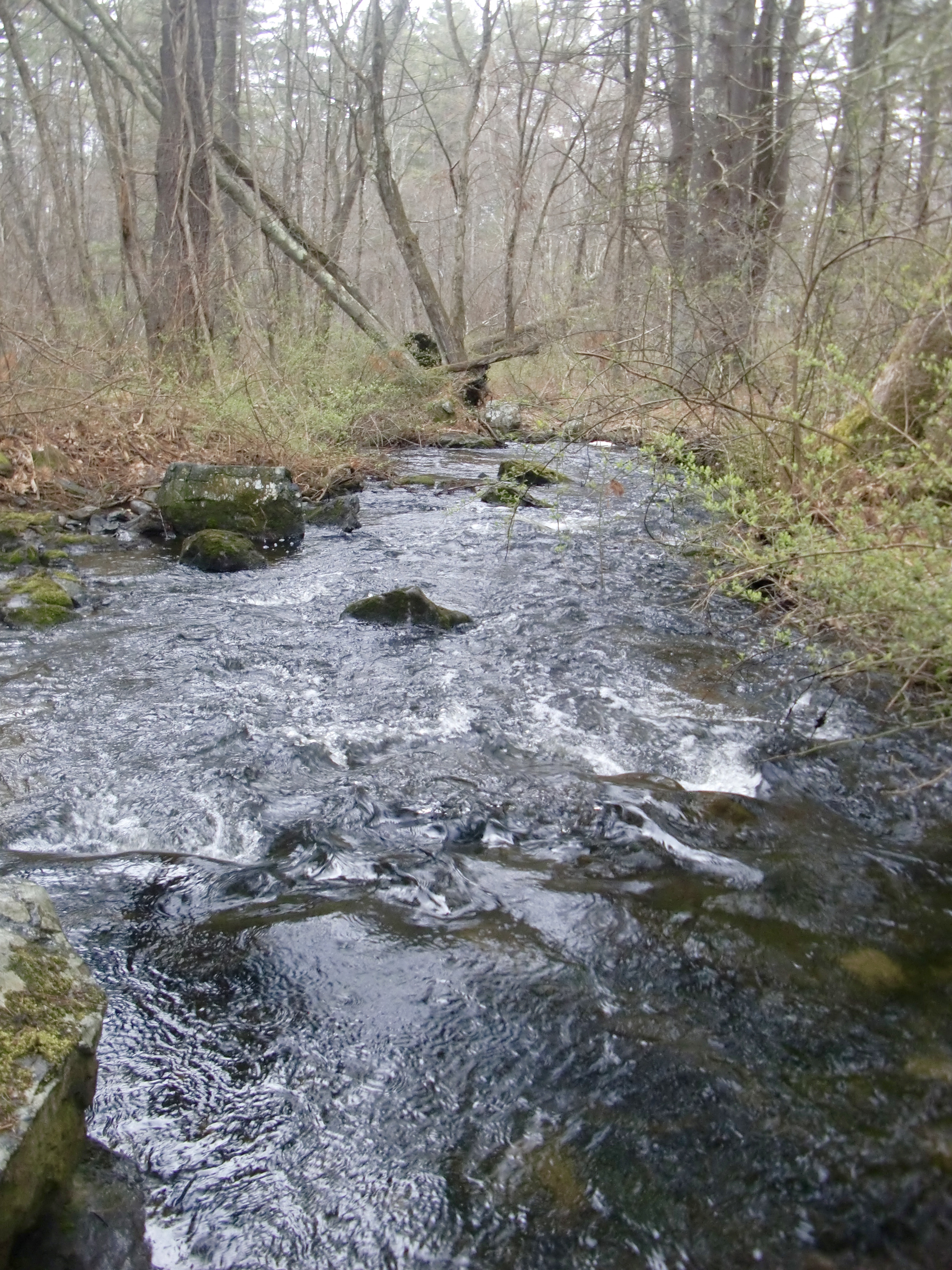 No ice on the creek, and the water was running fast and high.