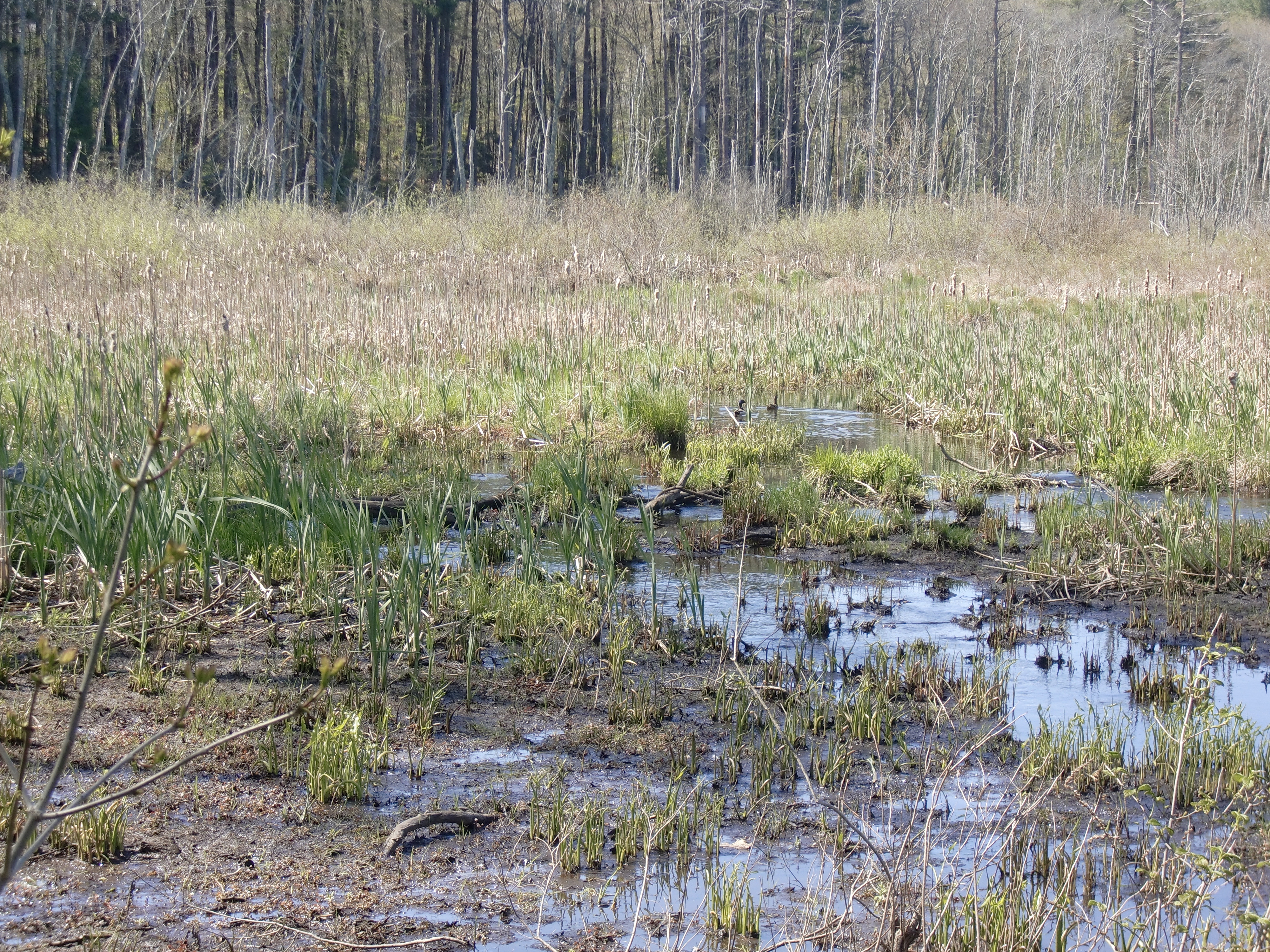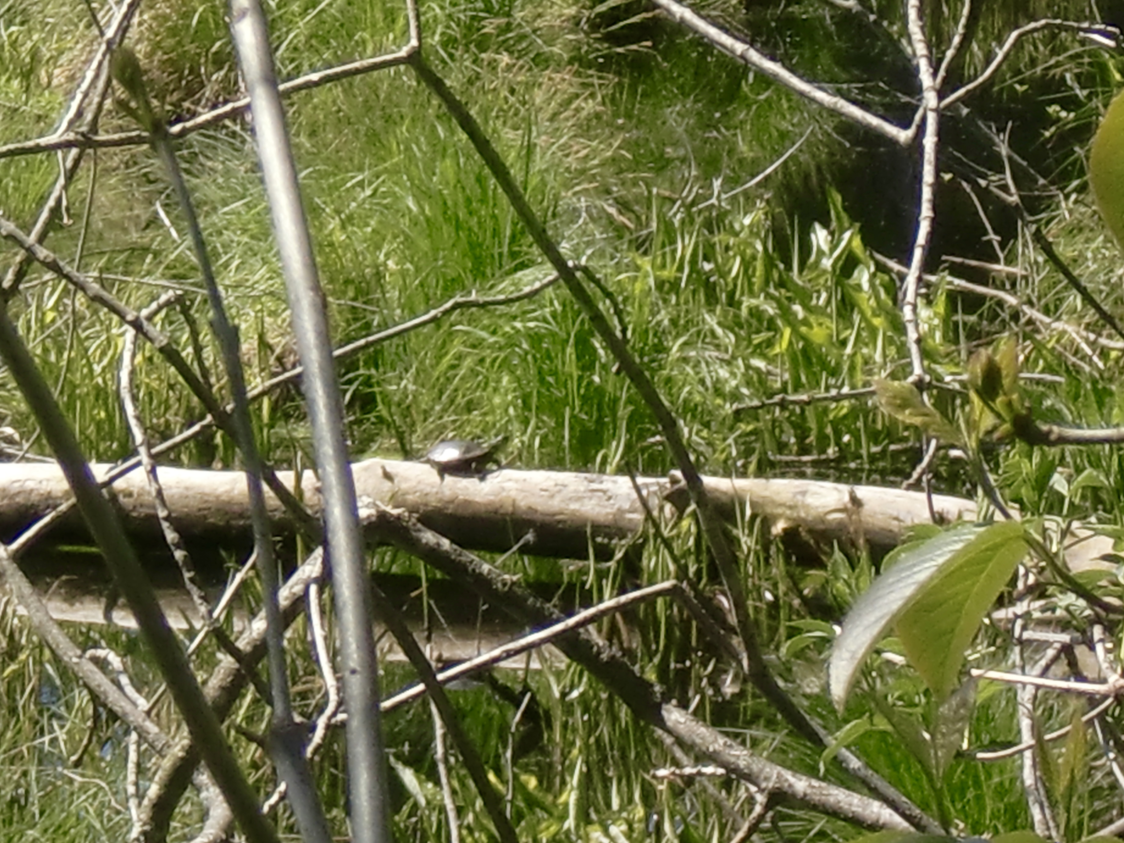 There was a turtle (before we scared it and it jumped off the log and swam away).
