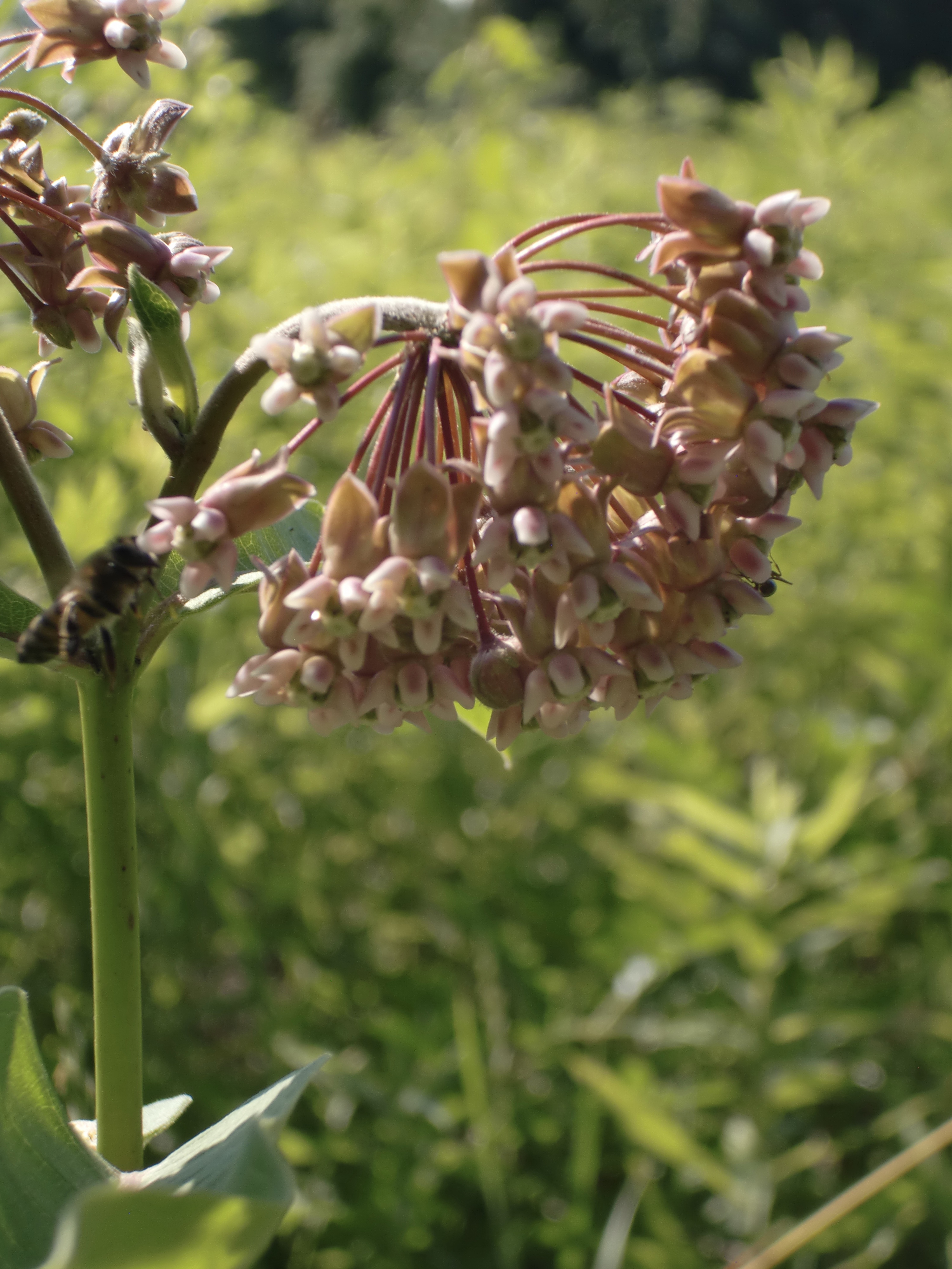 They also visited flowers, like these in-bloom common milkweed (Asclepias syriaca), which by our reckoning was more welcome employment.