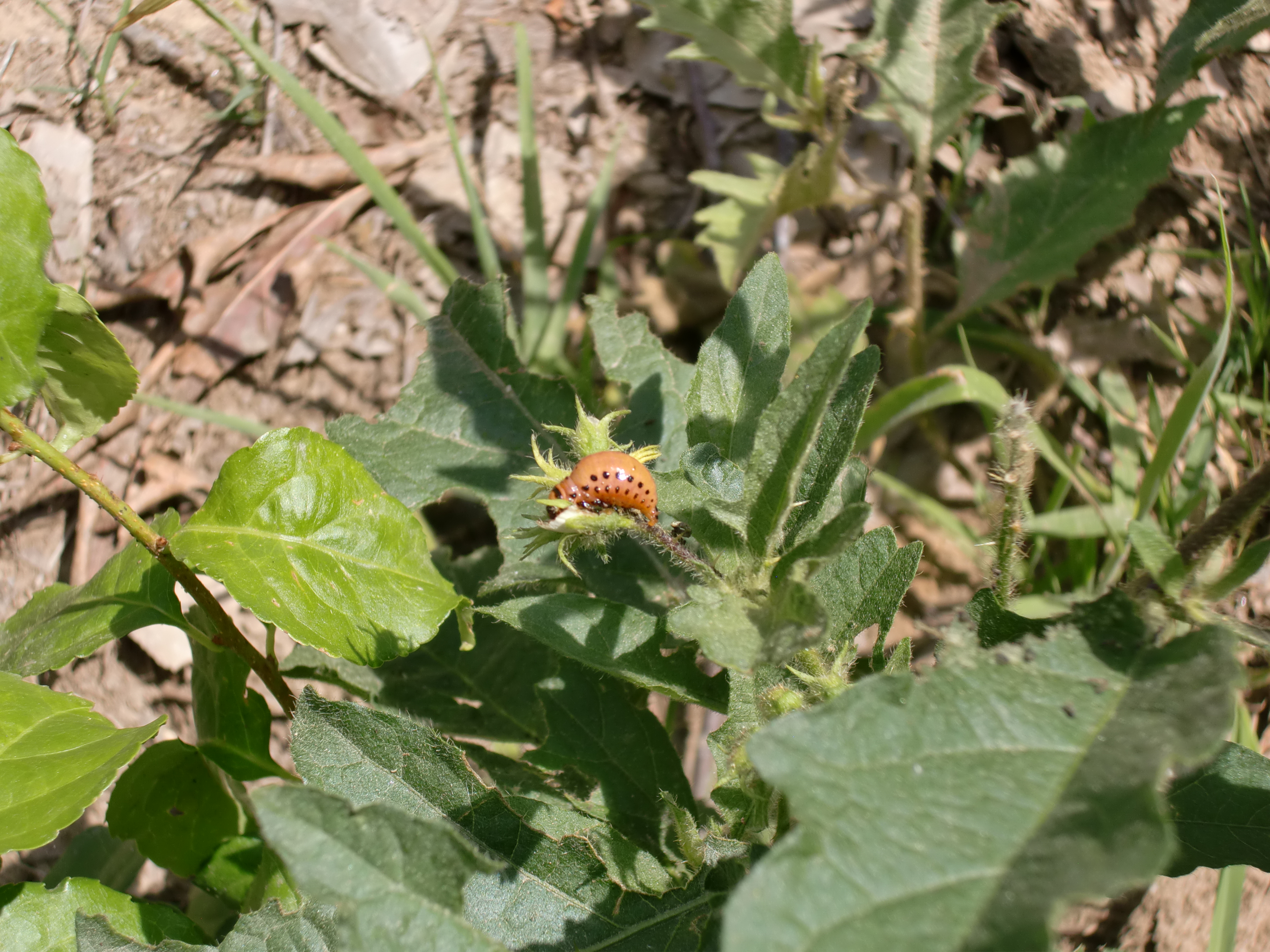 Next, we discovered this little character, which we determined later was a Colorado potato beetle larva (Leptinotarsa decemlineata), which is a very effective defoliator, particularly of nightshade plants.