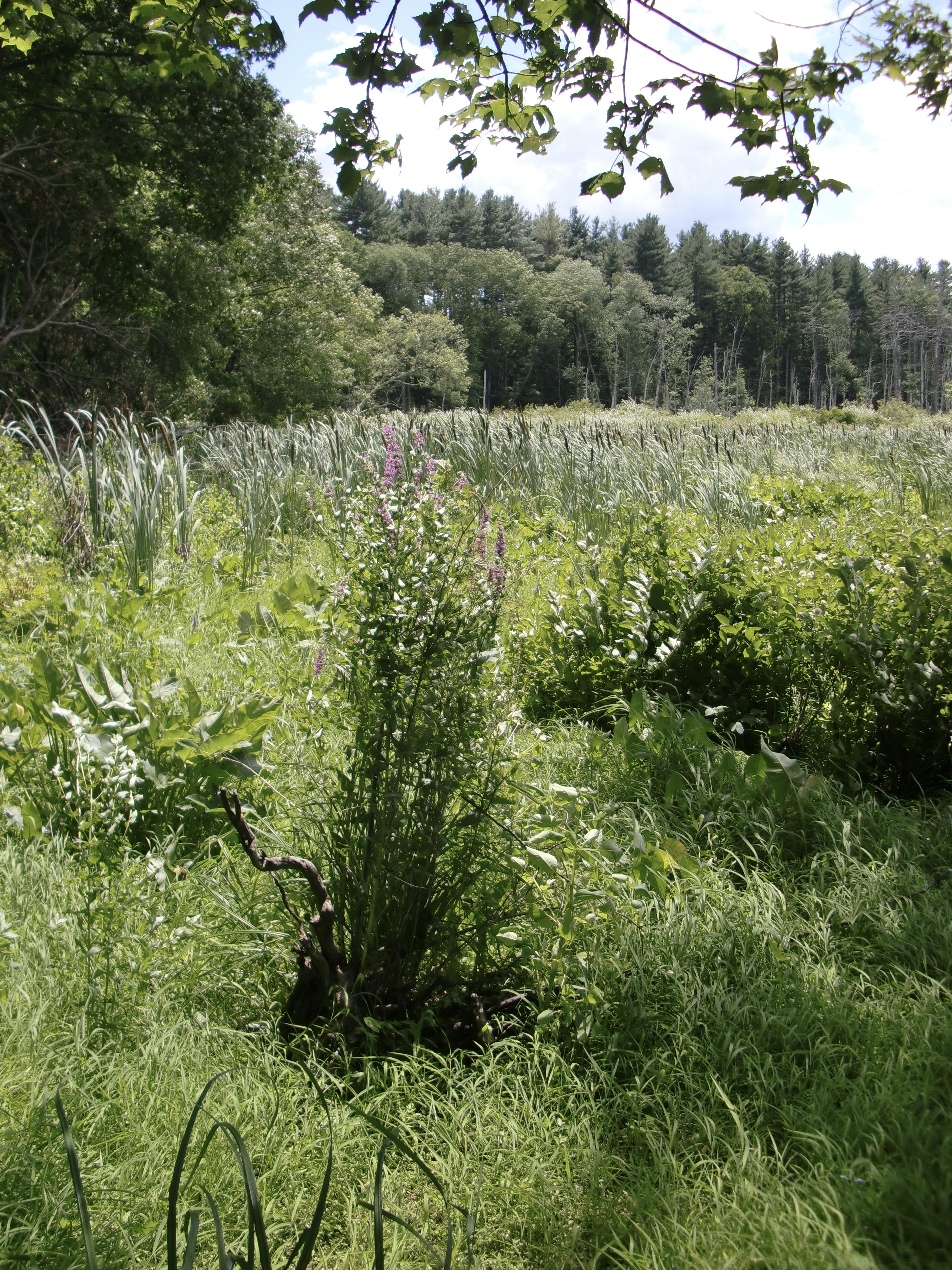 First, purple loosestrife (Lythrum salicaria), an invasive wetland plant.