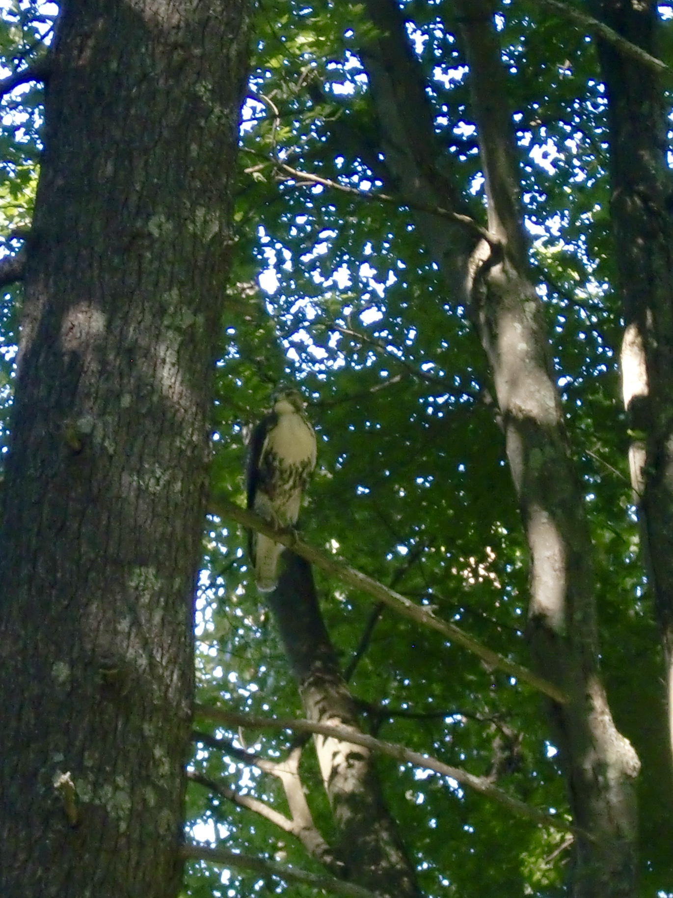 This red-tailed hawk (Buteo jamaicensis) was right next to the trail, and as we approached, it flew up onto this branch and posed for some photos. I hope it’s not too disappointed that the paparazza who showed up had a sub-awesome zoom on her camera.