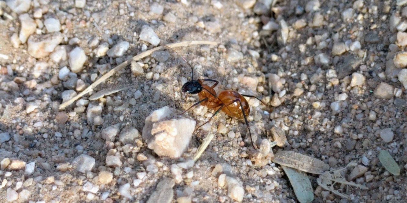 A fellow hiker along the trail in Saguaro National Park East. (Maybe a carpenter ant (Camponotus ocreatus)).
