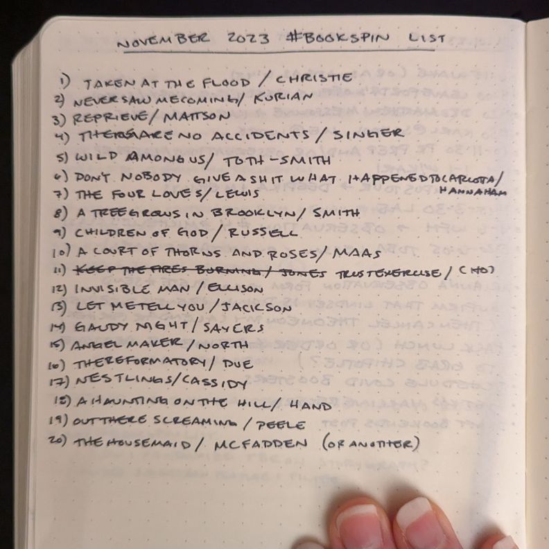 October is usually my full-on spooky reading month, and while I did read several spooky/thriller-type novels, my work schedule kept me from doing the other reading-related things I look forward to in the lead-up to Halloween, like participating fully in #scarathlon on Litsy or doing one or more creepy-season swaps.