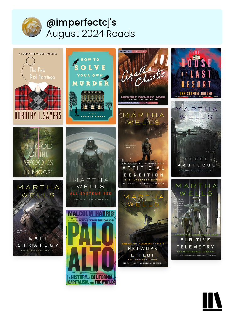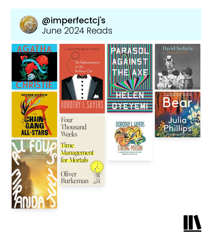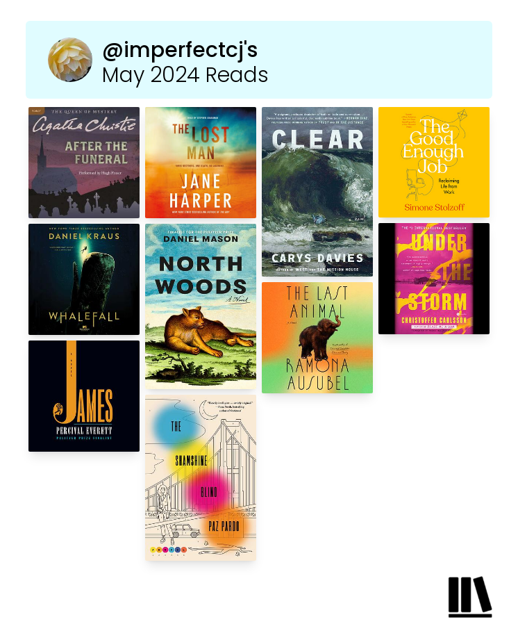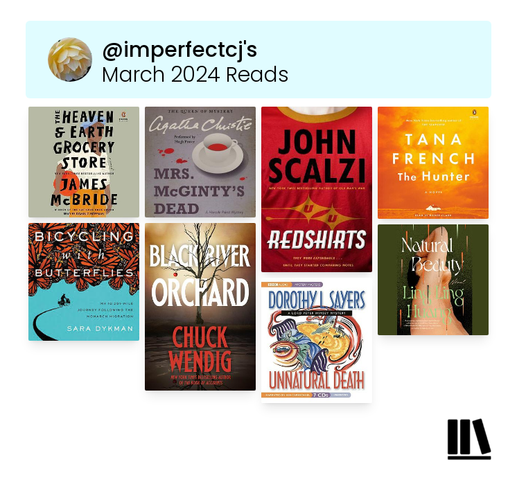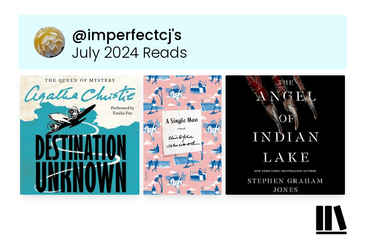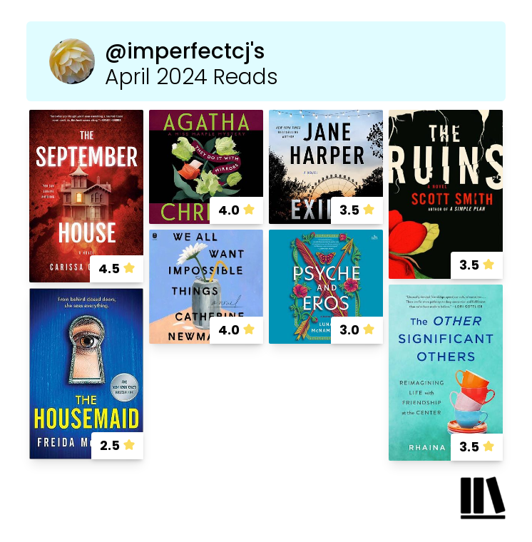In addition to my StoryGraph, you can see my Litsy profile for status updates throughout the month and my Instagram (@ImperfectHappiness) for mostly not-book-related photos.