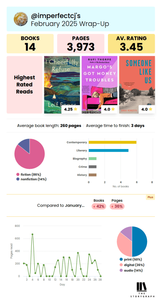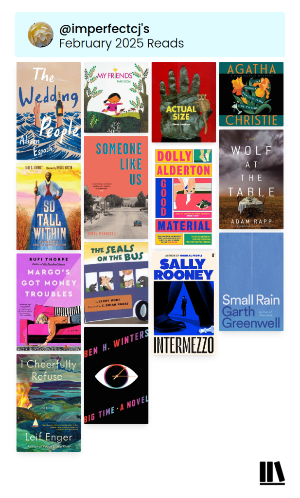 In addition to my StoryGraph, you can see my Litsy profile for status updates throughout the month.