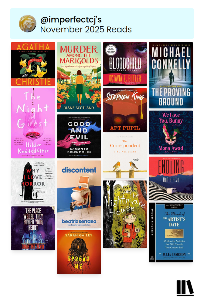 And that seems like a big enough announcement to start off this Bookends post. Here’s what I read in November: