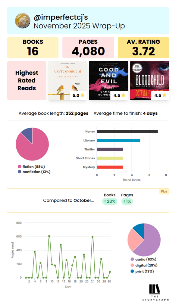 In addition to my StoryGraph, you can see my Litsy profile for status updates throughout the month.