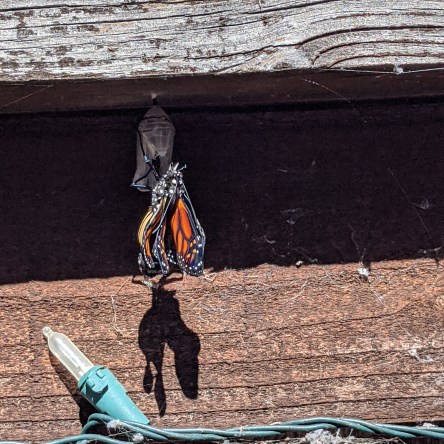 The ninth and last butterfly was still a pupa when I went to bed last night. The chrysalis seemed smaller than the others and hadn’t changed colors in the same way … Continue reading Monarch Butterfly Rearing Recap: Release and Conservation